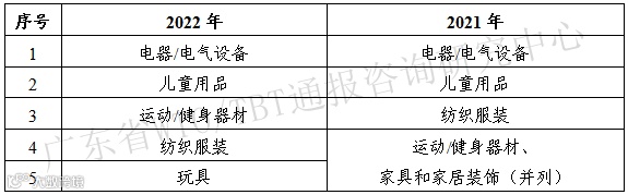 注:2022年统计中,将“自行车及其配件”类产品并入“运动/健身器材”类产品,2021年数据并未有此调整。