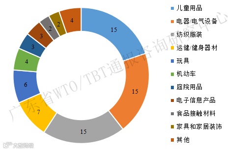 上半年,中国输美产品被召回最多的产品为儿童用品、电器/电气设备和纺织服装,均占中国产品被召回通报数的19.7%(见表2、图3)。