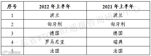 2022年上半年我国出口欧美