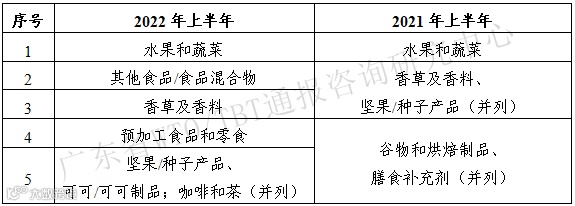 3 2022年上半年我国出口欧美农食及