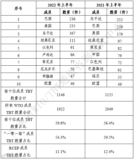 2022年上半年TBT通报情况