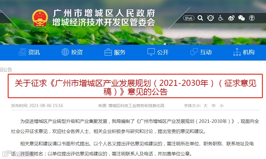 近日,增城区科技工业商务和信息化局发布关于征求《广州市增城区产业发展规划(2021-2030年)(征求意见稿)》意见的公告。