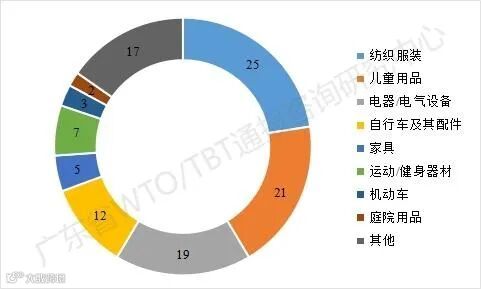 中国输美产品被召回最多的产品为纺织服装(22.5%)、儿童用品(18.9%)和电器/电气设备(17.1%)(见表2、图3)。