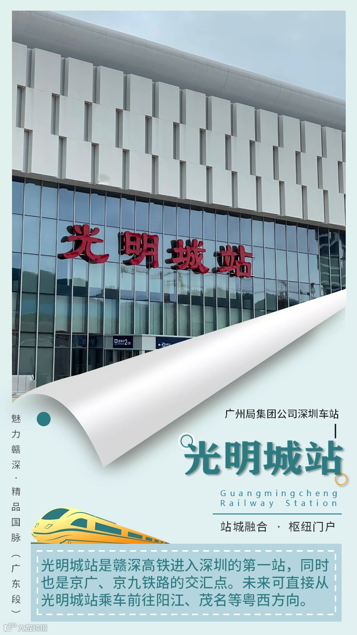 ●全线共设14个车站,分别是:赣州西、信丰西、龙南东、定南南、和平北、龙川西、河源北、河源东、博罗北、惠州北、仲恺、东莞南(塘厦)、光明城、深圳北。