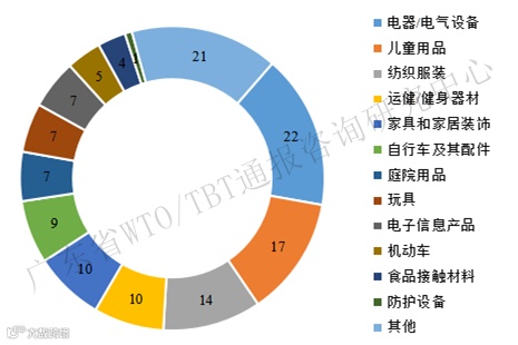 注:自2020年起,本公众号“TBT通报和欧美召回情况”系列报告中,美国CPSC召回的原产品分类“机电产品”改为“电器/电气设备”,原产品分类“家具”改为“家具和家居饰品”(增加家居饰品)。“其他类”为磁铁、不锈钢泳池扶梯、圣诞老人信报箱和扶手床栏杆等。