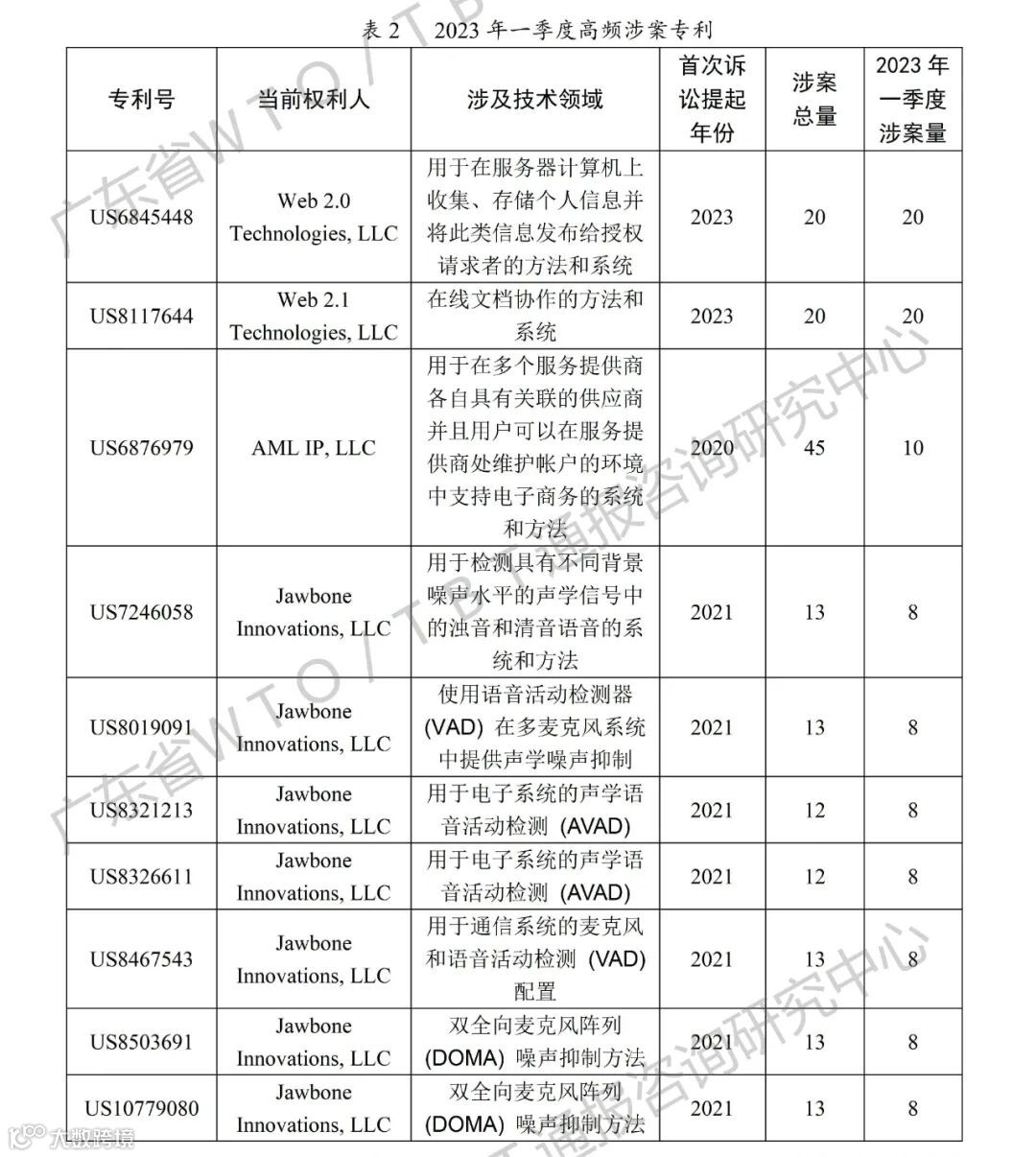 Web 2.0 Technologies, LLC于2021年在美国得克萨斯州注册成立,涉案专利US6845448和US8117644的技术为个人信息在线储存方法和在线文档协作方法,涉及计算机软件和通信领域。该公司自2023年开始利用此专利组合提起诉讼,仅在1月份就提起10起,截至一季度共提起20起专利诉讼。