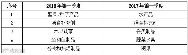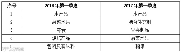表8 2018年第一季度与去年同期欧盟RASFF召回食品前5类产品比对
