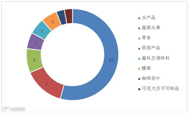 其中,RASFF通报食品45例,同比减少31.8%,占我国被RASFF通报产品的65.2%。其次还有食品接触材料21例,饲料3例。