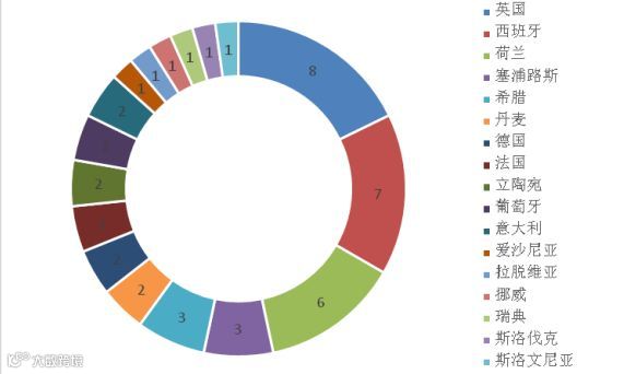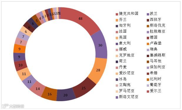 图4 2018年第一季度欧盟RAPEX召回中国消费品的国家分布