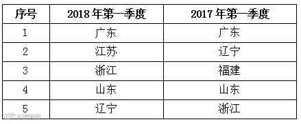 表5 2018年第一季度与去年同期美国FDA拒绝进口食品前5个省份/地区比对