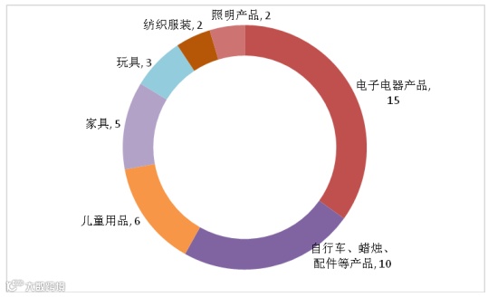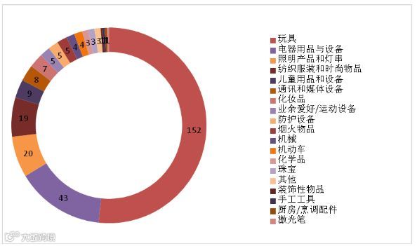 被通报最多的产品为玩具,其次为电器用品和设备、灯串和照明设备、纺织服装与时尚物品、儿童用品和设备、通讯和媒体设备、化妆品(详见表3、图3)。