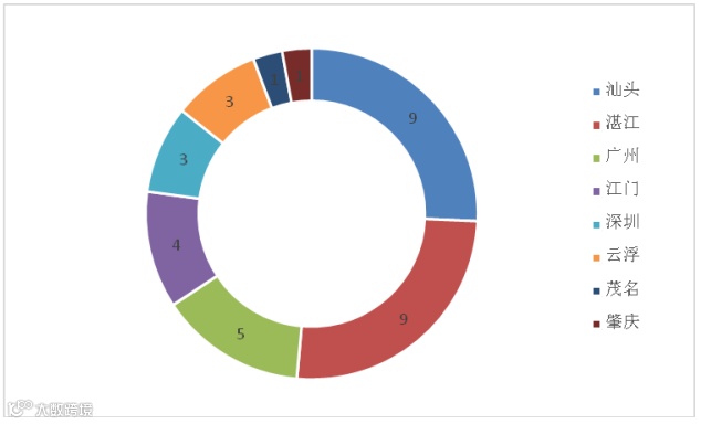 图5 2018年第一季度美国FDA拒绝进口的广东农食产品地市分布