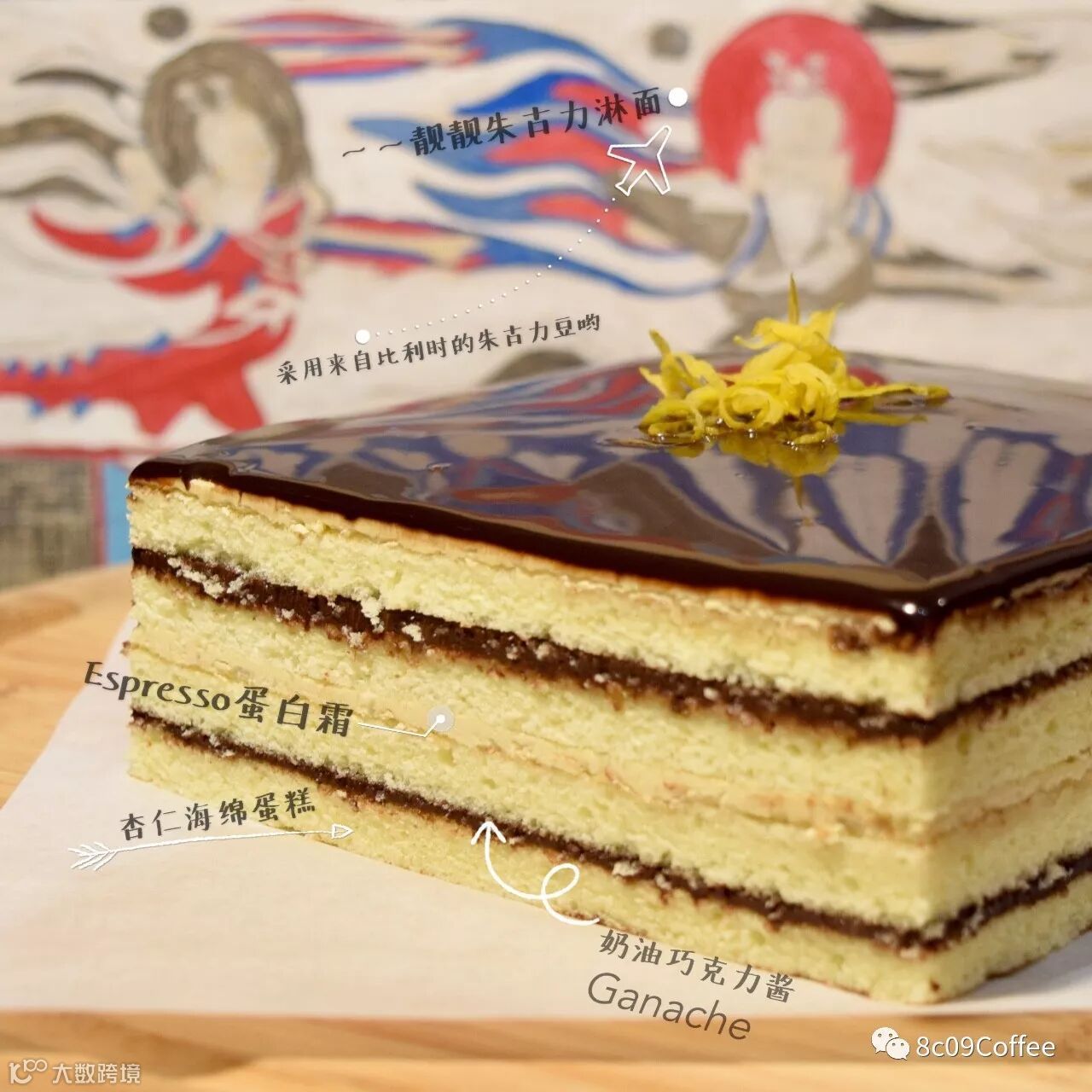 欧培拉,法国知名甜点,是款有着数百年历史的蛋糕,那浓郁的巧克力与咖啡味令每个爱吃巧克力的人都迷恋不已。传统的欧培拉共有8层,其中包括四层浸过咖啡糖浆的海绵蛋糕和牛油、鲜奶油和巧克力奶油并以此做成的馅,充满咖啡与巧克力的香味,入口即化。