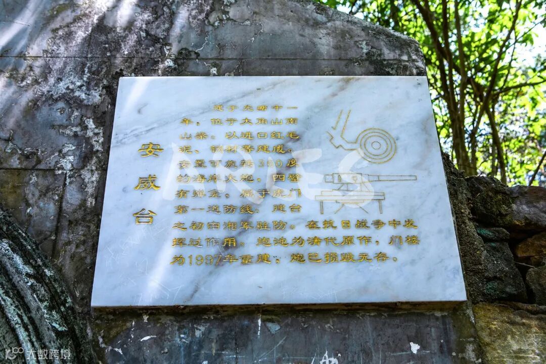 安威台门楼上灰塑匾额写有“安威台”三字,无上下款。还有一坑道侧门,两坑道构成“匕”字形。炮池为圆形。1997年在第二期维修工程中对门楼、坑道、炮池进行了维修。