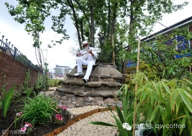 种了很多花花草草,还摆了雕塑,搞成了一个小清新绿洲
