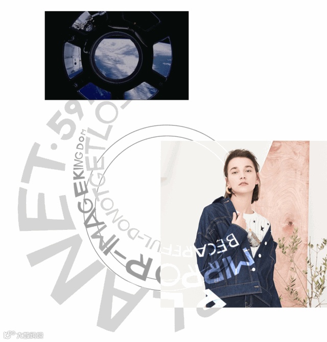 后背的大面积字母和宇航员拼贴插画,