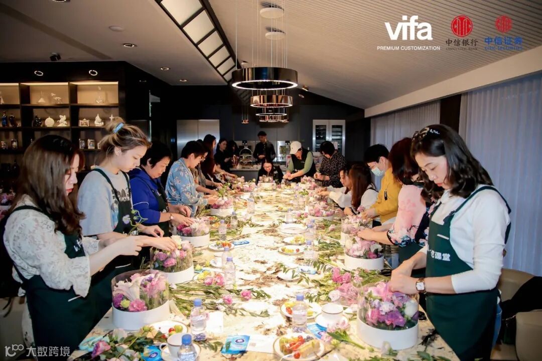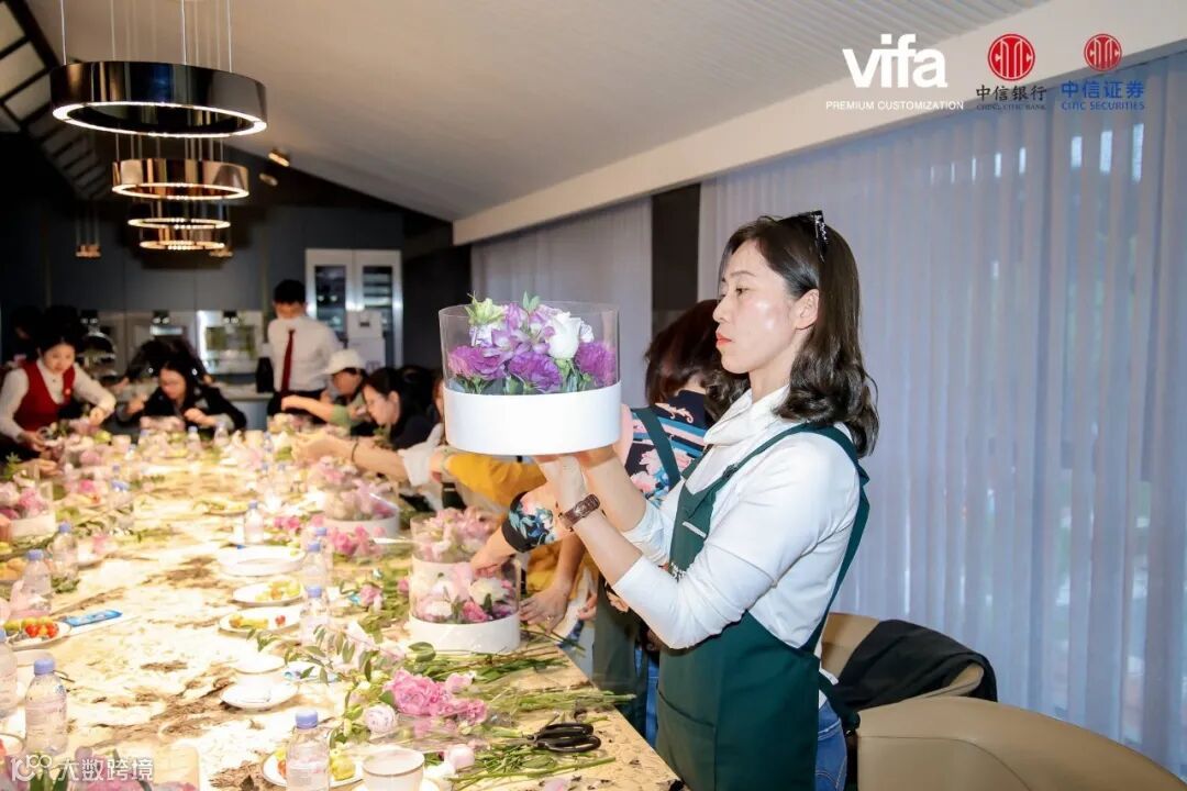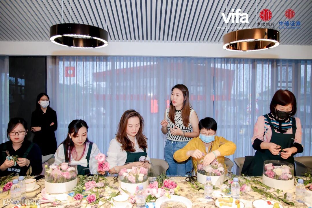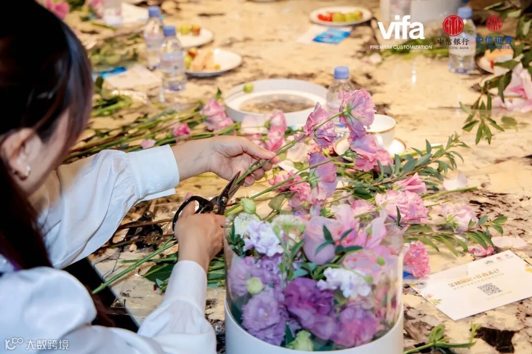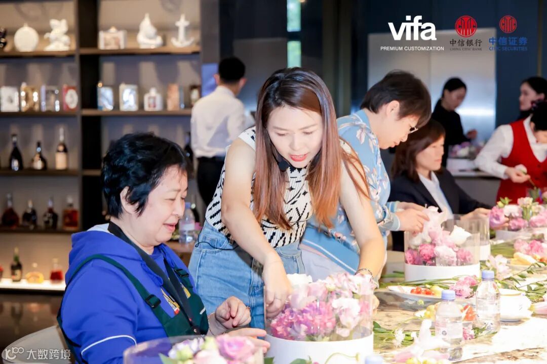 专业花艺师Cherry在花艺课堂上耐心教学,