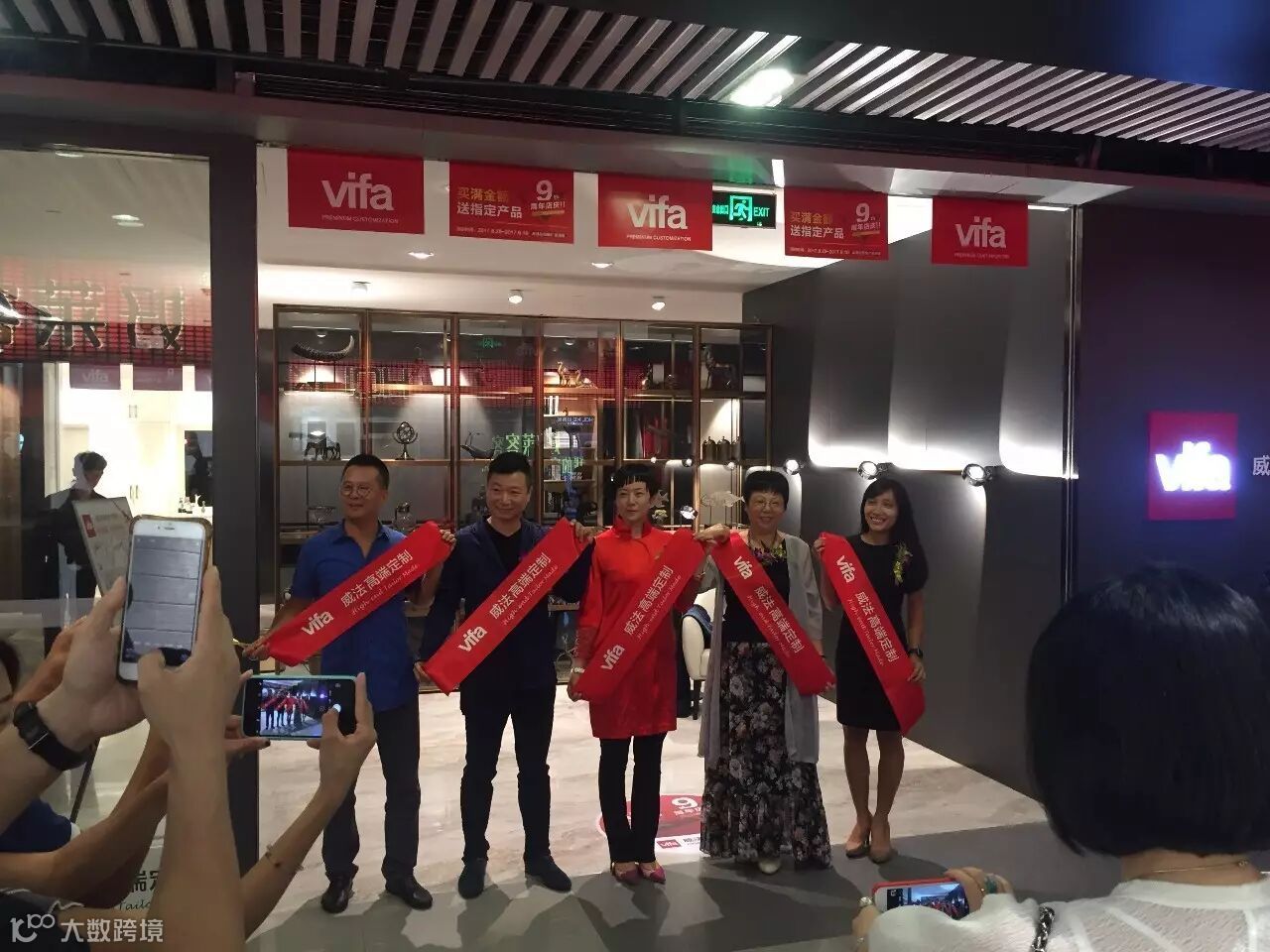 VIFA威法高端定制广州分公司岳西荣女士(左三),卫观工作室陈卫群老师(左二),广州锦上名店董事长张帮肯先生(左一),中国室内装饰协会设计委员会副秘书长、广东省陈设艺术协会执行会长、CllD第九(广州)专委会秘书长胡小梅女士(左四),Occhio中国项目顾问Micheala Gao(左五)为开业进行了剪彩,与现场三十多位嘉宾一起,共同见证了VIFA威法高端定制体验店隆重揭幕的历史性时刻。