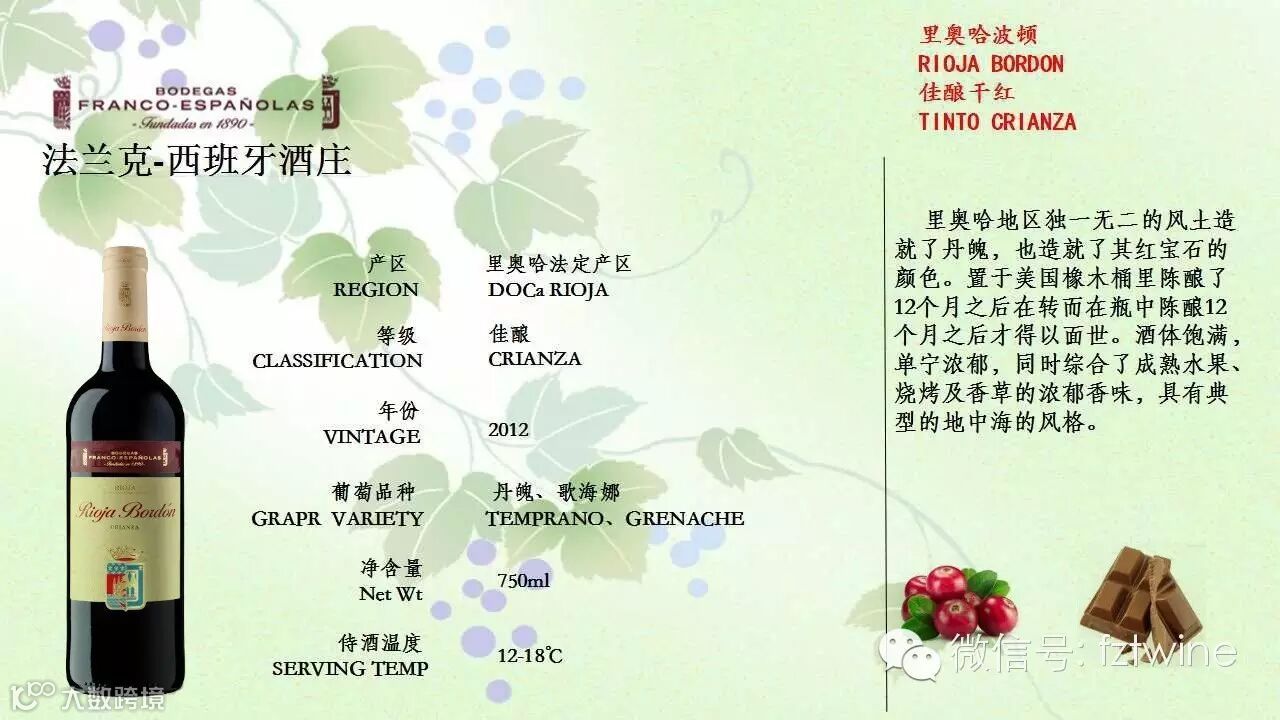 一杯在手,满口留香。我知道,这份香,同样也弥留着岁月的痕迹。这是十二个月橡木桶陈酿和十二个月瓶中养酒的痕迹。我知道这不仅仅是橡木桶到酒瓶的距离,更是一种对品质卓越追求的象征,带领着整个里奥哈家族乘风破浪,一往无前。