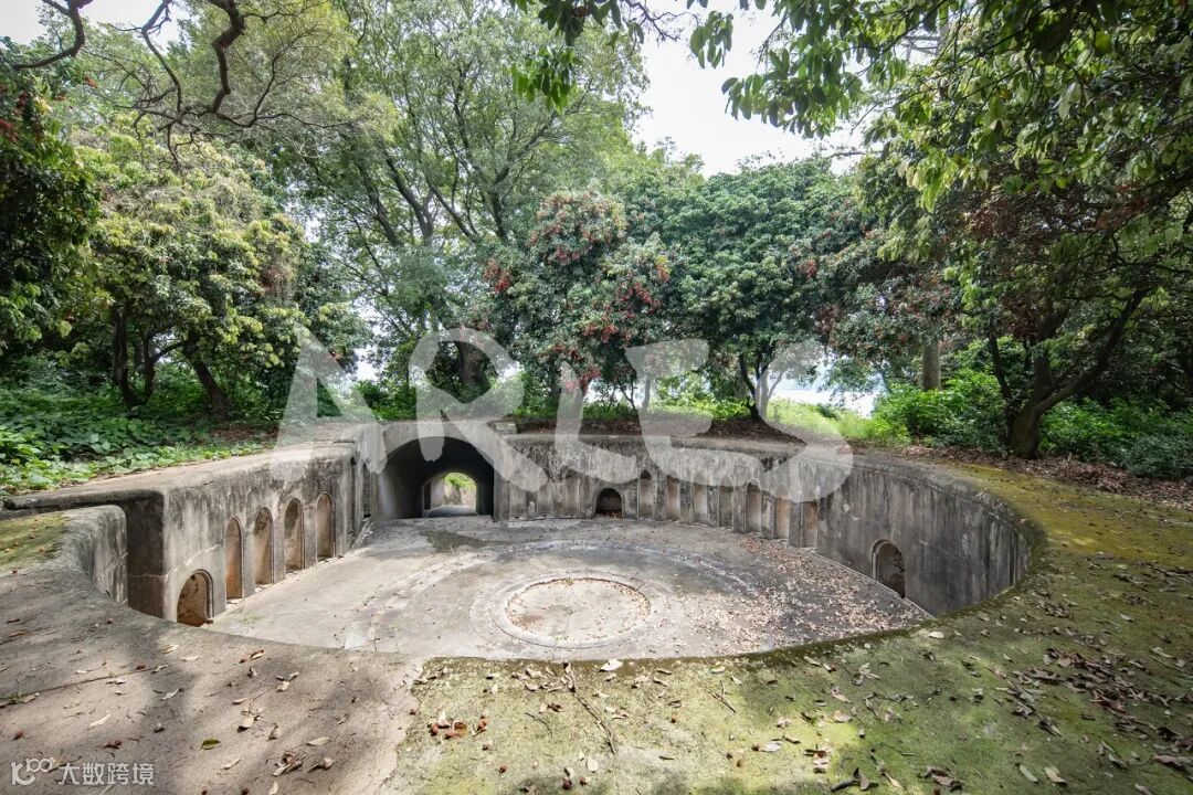 2、3号台,在岛的西边高地顶峰上,居高临下,相距约19米。两个炮台由一个坑道口出入,两侧有防护墙。皆为圆形炮池。