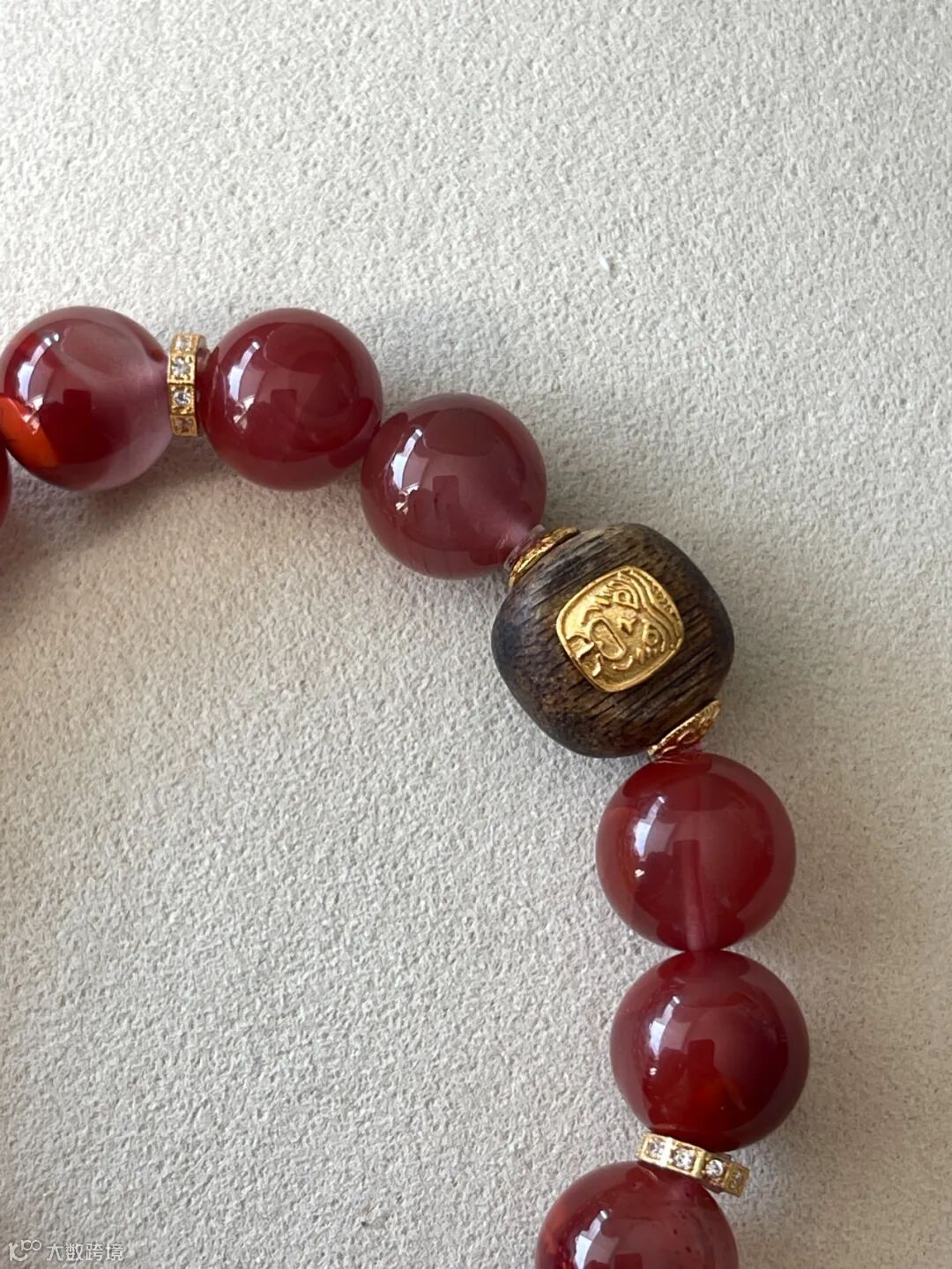 重点是它是无注胶、无烤色的天然南红玛瑙,原矿料的质感摸起来温润细腻,不是那些人工优化的通货能比的,戴得也安心。