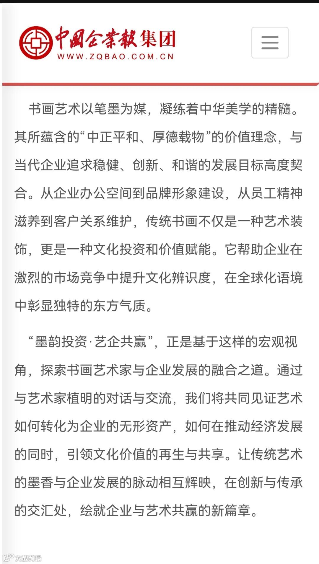 敬请关注《墨韵投资·艺企共赢——价值型墨坛名家植明特别报道》。