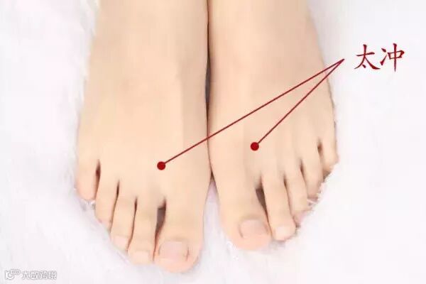 通过按摩太冲穴可降肝火。太冲穴在脚背上,位于大足趾与第二个足趾之间缝隙向上,1.5厘米的凹陷处,是足厥阴肝经上穴位。在按摩此养生穴位前,先用热水泡脚约10分钟,然后用大拇指从下向上推揉3分钟。