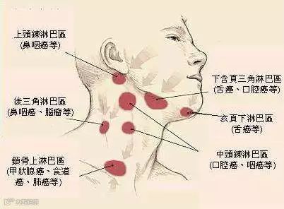 当病毒侵入人体发生感染时,淋巴结会肿大疼痛。像喉咙发炎时,会在下巴颏下摸到两个肿块,那就是淋巴结。炎症消失后淋巴肿块也会自然缩小。