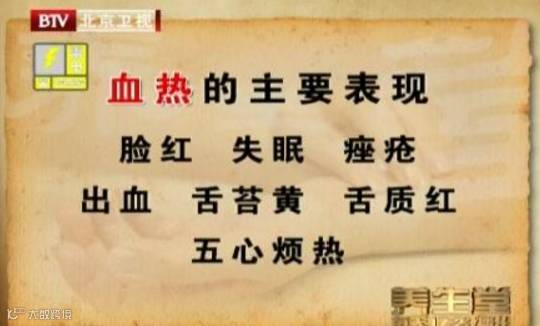 血热并不是指血液温度高,而是内生火热,血行加快或血行力量过大,易使体内毒素上升的一种现象。中医认为,如果体内阳气过盛,火气很大,血液过热则血行加速,脉搏跳动变疾,甚至会伤害脉络、耗损阴气。 如果有下面这些问题,那么你的血可能已经开始“热”了。