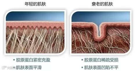 20岁以前的女性皮肤中胶原蛋白的含量处于最高峰时期,35岁以后,人体自身制造的胶原蛋白量开始不够自身需要,出现负平衡。随之而来的是各种皱纹的显现,面颊松弛,腮部下垂,皮肤粗糙,毛孔粗大,面容日渐老态,每隔五年,松弛速度成倍递增。