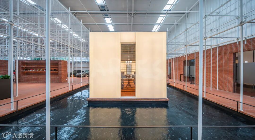 高挑的厂房架构下,空间以一种近乎坦诚的姿态铺陈开来——裸露的红砖墙面与水泥地面保留着原始的肌理,无声诉说着时光的重量。屋顶处,纯白色的脚手架纵横交错,以极简的线条勾勒出建筑的骨骼,轻与重在此达成微妙的平衡。