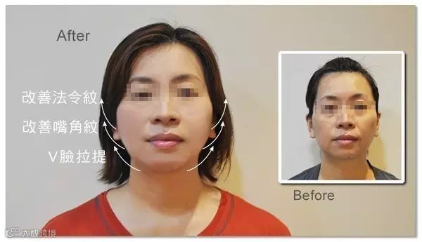 因为本身是肉肉臉,加上法令纹与嘴角纹连在一起,因此建议做面部线雕,而且只需要15分钟的疗程!