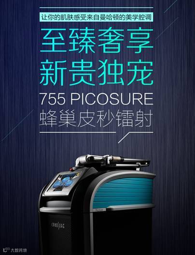 皮秒激光是世界上第一个实现皮秒翠绿宝石激光的技术,同时也是全球第一个有picosecond(皮秒时间)的创新设备,通过FDA最多适应症,以一个快速和强大的能量更精细的粉碎黑色素,通过淋巴排出体外的原理,达到改善色素性肌肤。该激光可治疗各种良性色素病变,如日晒斑、后天性真皮黑色素细胞增生症、太田痣、伊藤痣和普通雀斑,皮秒755蜂巢镭射科技开启了医学美容镭射新纪元。