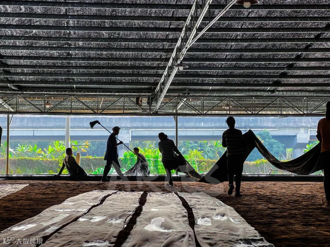 香云纱的染整,虽由人手操作,却始终由“天”来成全。整个过程极度依赖阳光、温度与湿度。工人们每晚关注天气,只为将绸布置于最适宜的阳光下,之后的工作,便放心地交给天时。他们谦逊地自称为“天的助手”。