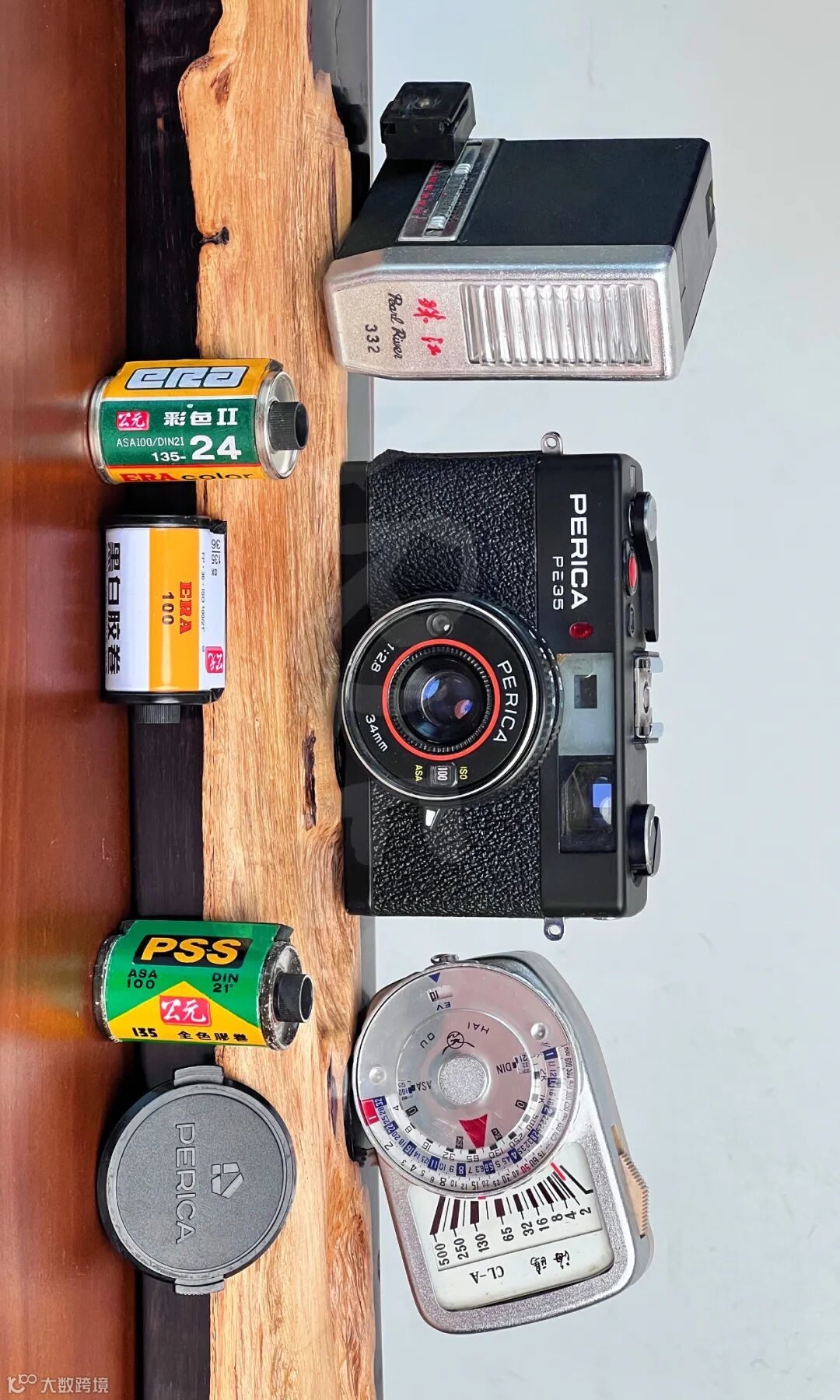 核心是那台广州照相机厂生产的PERICA PE-35。它并非昂贵的舶来品,却是无数广东家庭记录生活的功臣。它的机身是扎实的工程塑料,握在手里有一种令人安心的分量。上卷的过程充满仪式感——打开后盖,将那个小黑柱般的“公元”黑白胶卷从锡箔纸中取出,小心翼翼地把片头卡入卷轴,然后合上后盖。转动过片齿轮时,那“喀拉拉”的机械声,是开启一段记忆之旅的前奏。这卷来自汕头感光器材厂的胶卷,承载着岭南土地的质朴,它记录下的影像,反差鲜明,颗粒感十足,自带一种深沉而写实的时代滤镜。