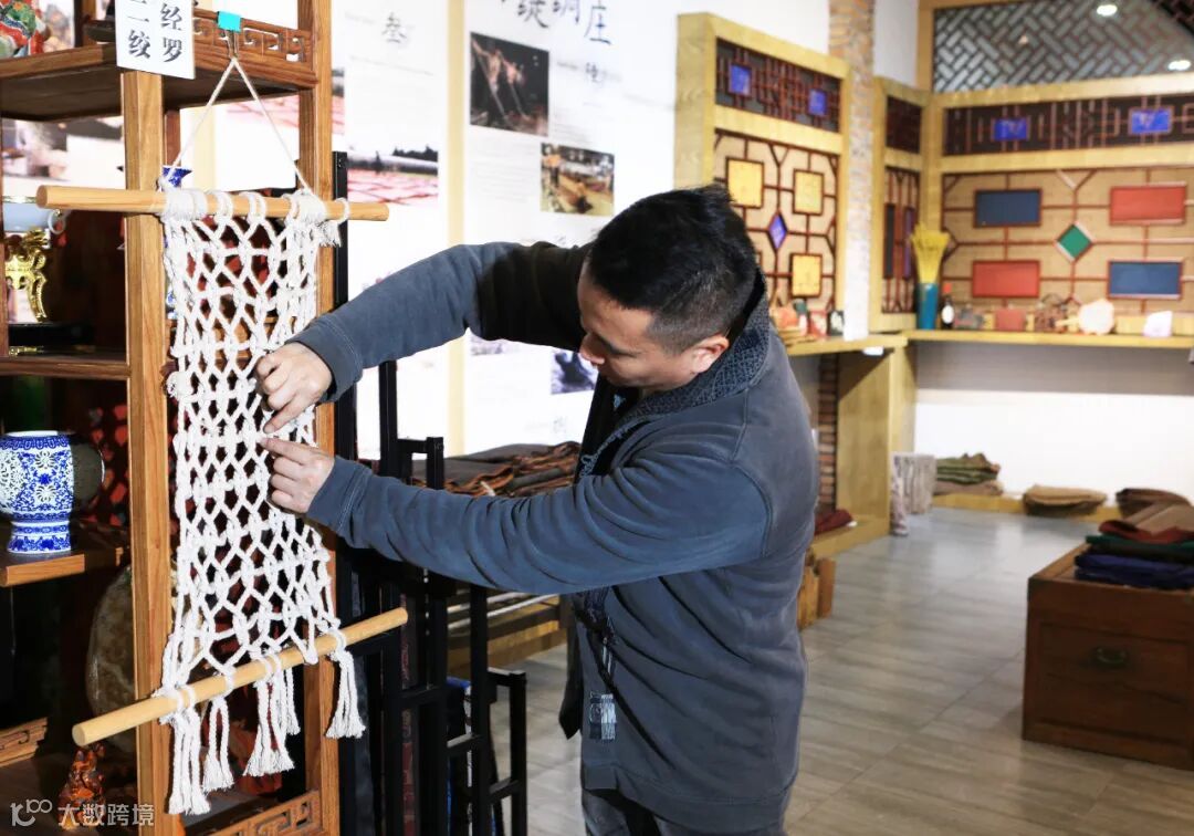 绞纱就是两股纱交叉,交叉之后就会形成结。这种织造技艺决定了它的织物表面是不平滑、有凹凸点的。我们织毛衣就知道,这边绞一针那边绞一针,中间就有个洞,这样就形成了镂空花纹。