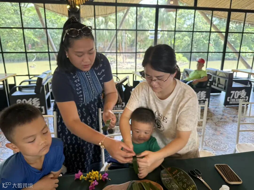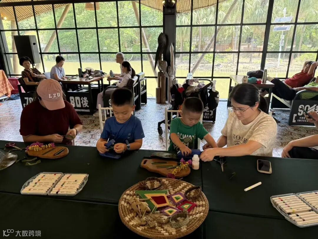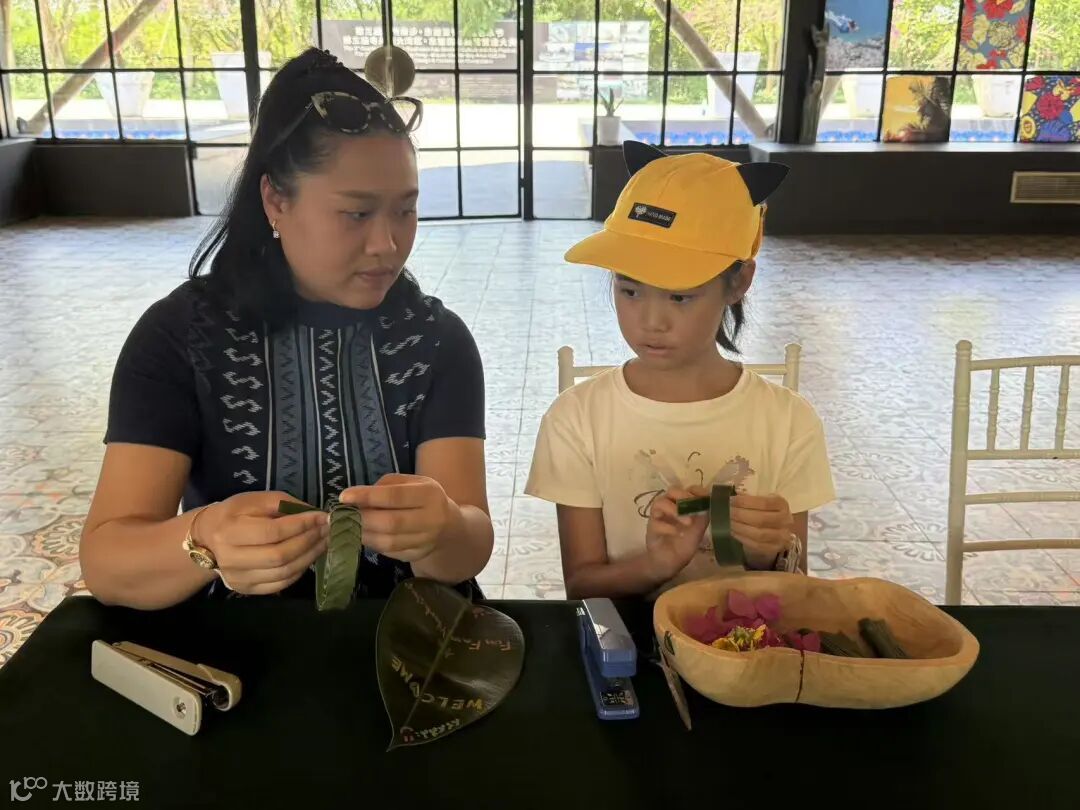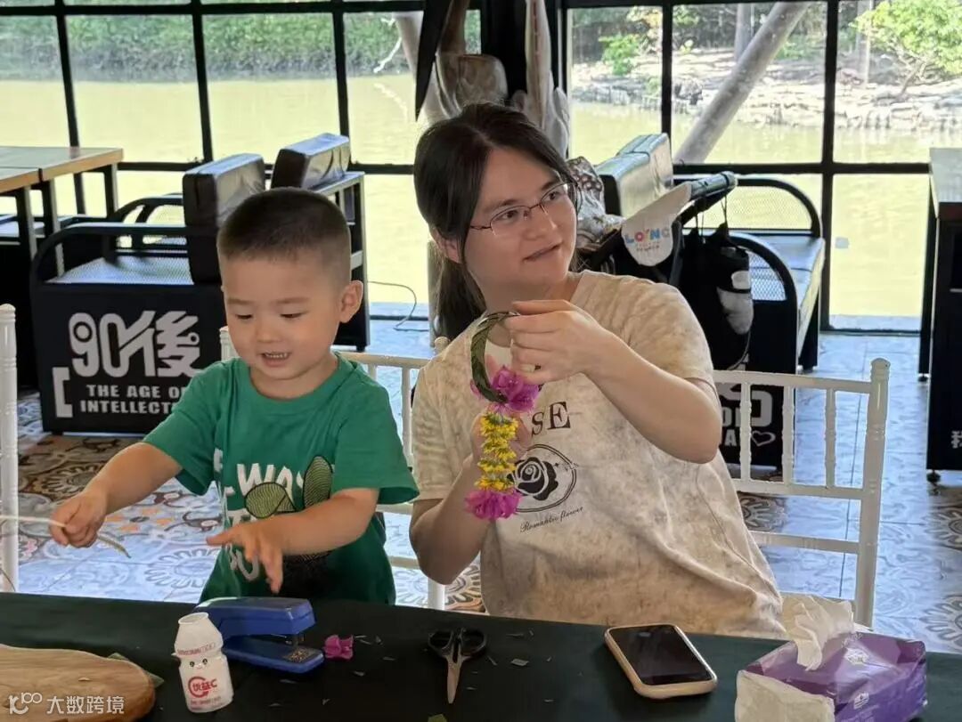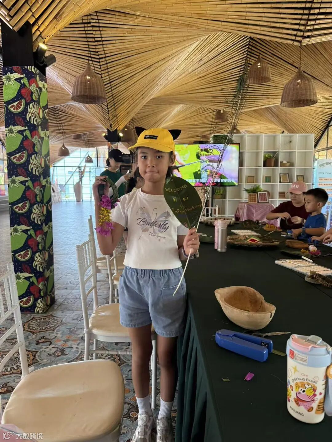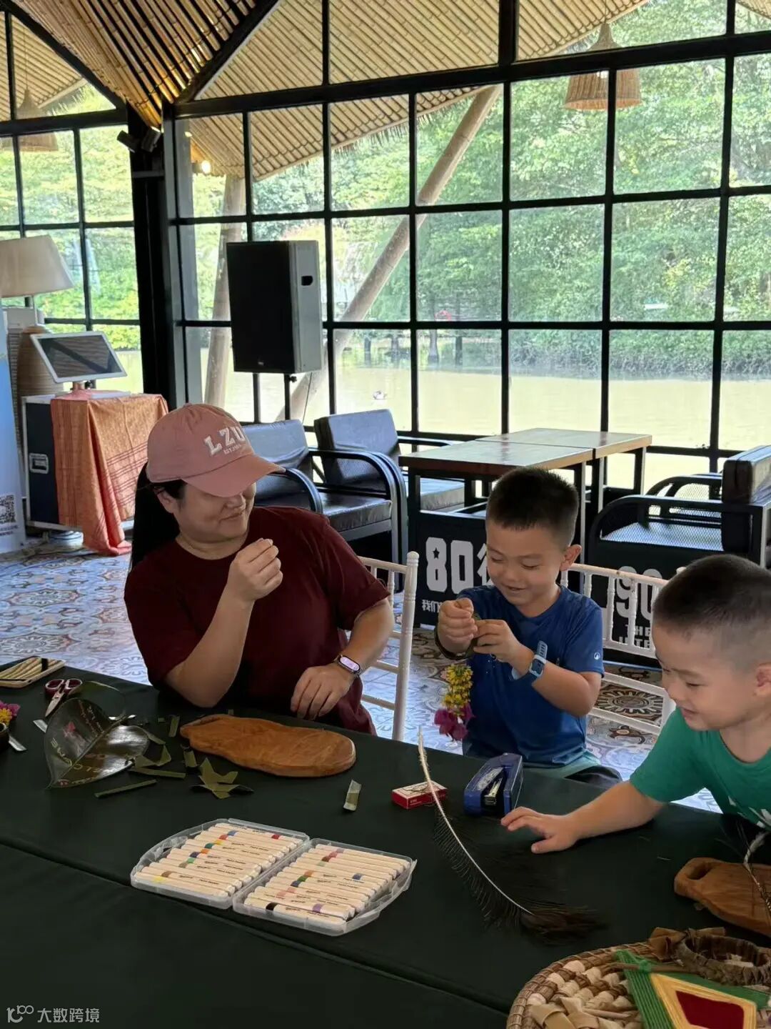 当一个个独一无二的泰式手环完成时,孩子们迫不及待地戴在手腕上展示,现场满是欢声笑语,每一个手环都藏着亲子间的温情与自然的美好。