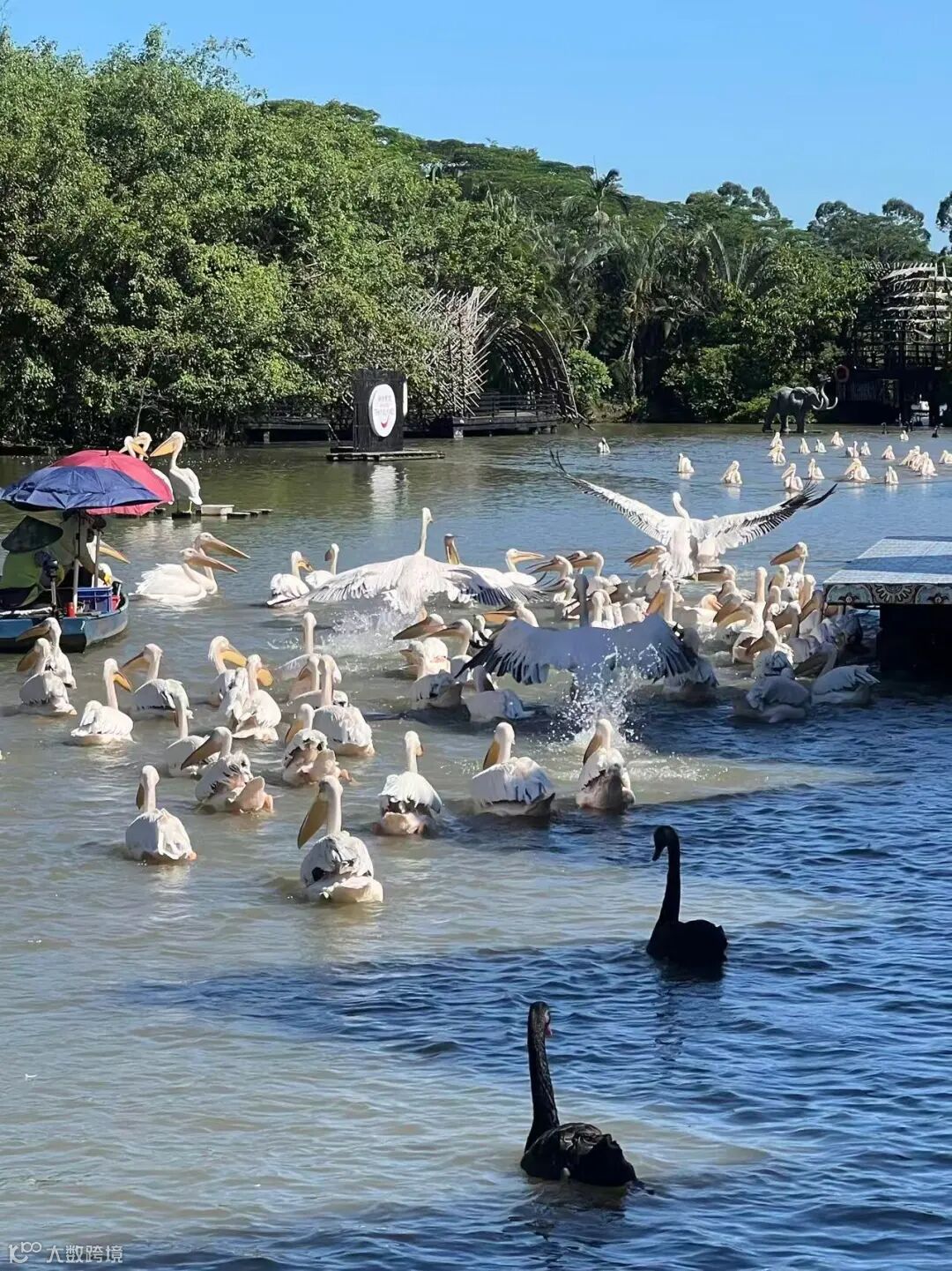 除了候鸟奇遇,每天上午 10 点、下午 3 点的鹈鹕 “干饭名场面” 依旧热闹!一群 “大嘴宝宝” 排着整齐的队伍,伸长脖子等待投喂,食物抛向空中时,它们精准张嘴接住,偶尔争抢食物的模样逗得人哈哈大笑,绝对是不容错过的萌趣瞬间。