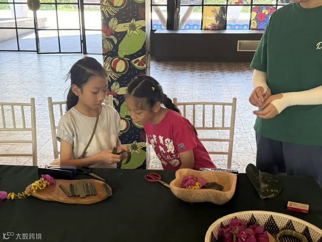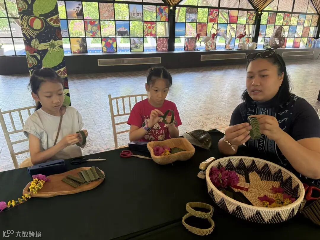 上一期活动随着金月姐姐一声亲切的 “萨瓦迪卡”,泰式手环编织之旅正式拉开帷幕。小朋友们小心翼翼地拿起翠绿的叶片、色彩鲜亮的三角梅,眼神里满是期待。