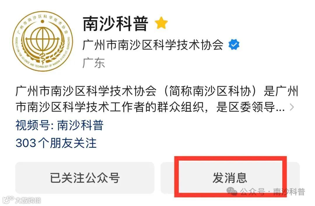 进入“南沙科普”微信公众号