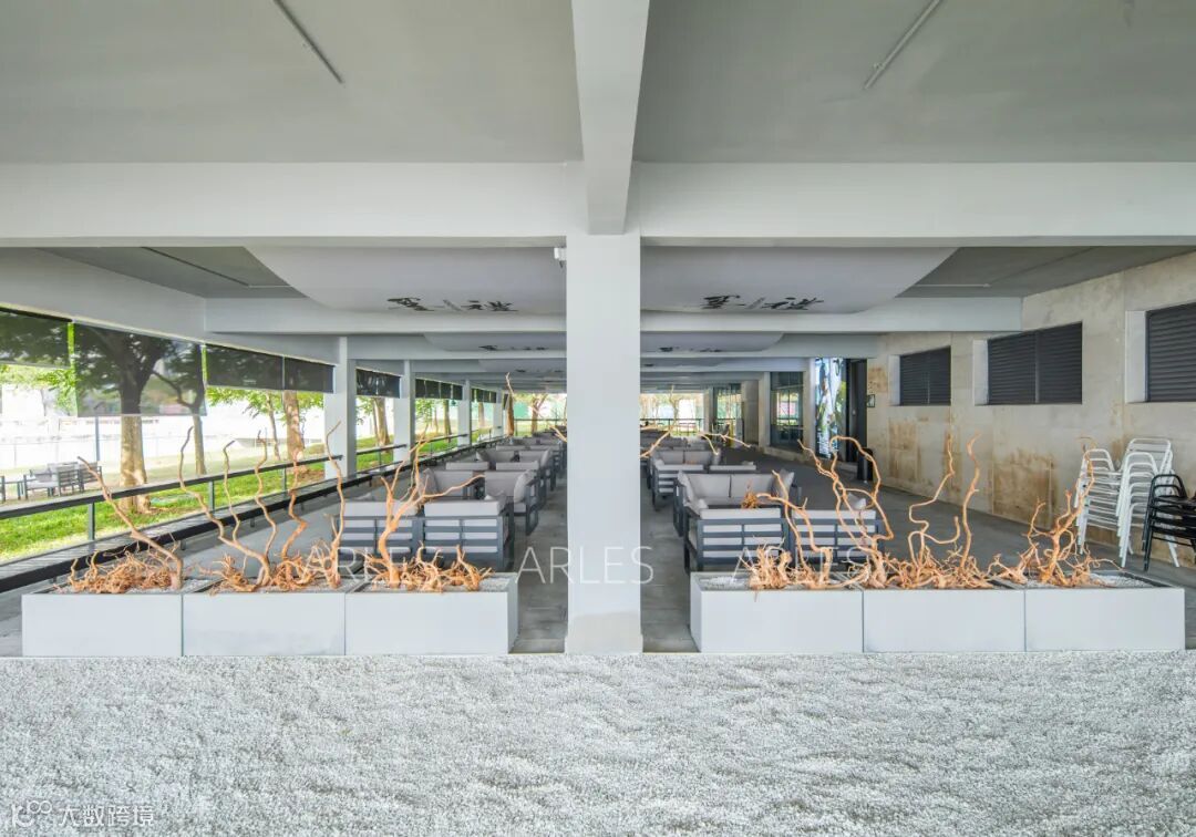 1700平方米空间被划分为三大体验区:咖啡馆、艺术馆、瑜伽馆。顾客可上午参加咖啡烘焙研学课,午后体验江景瑜伽,傍晚在艺术馆观展,入夜后加入草坪音乐派对。