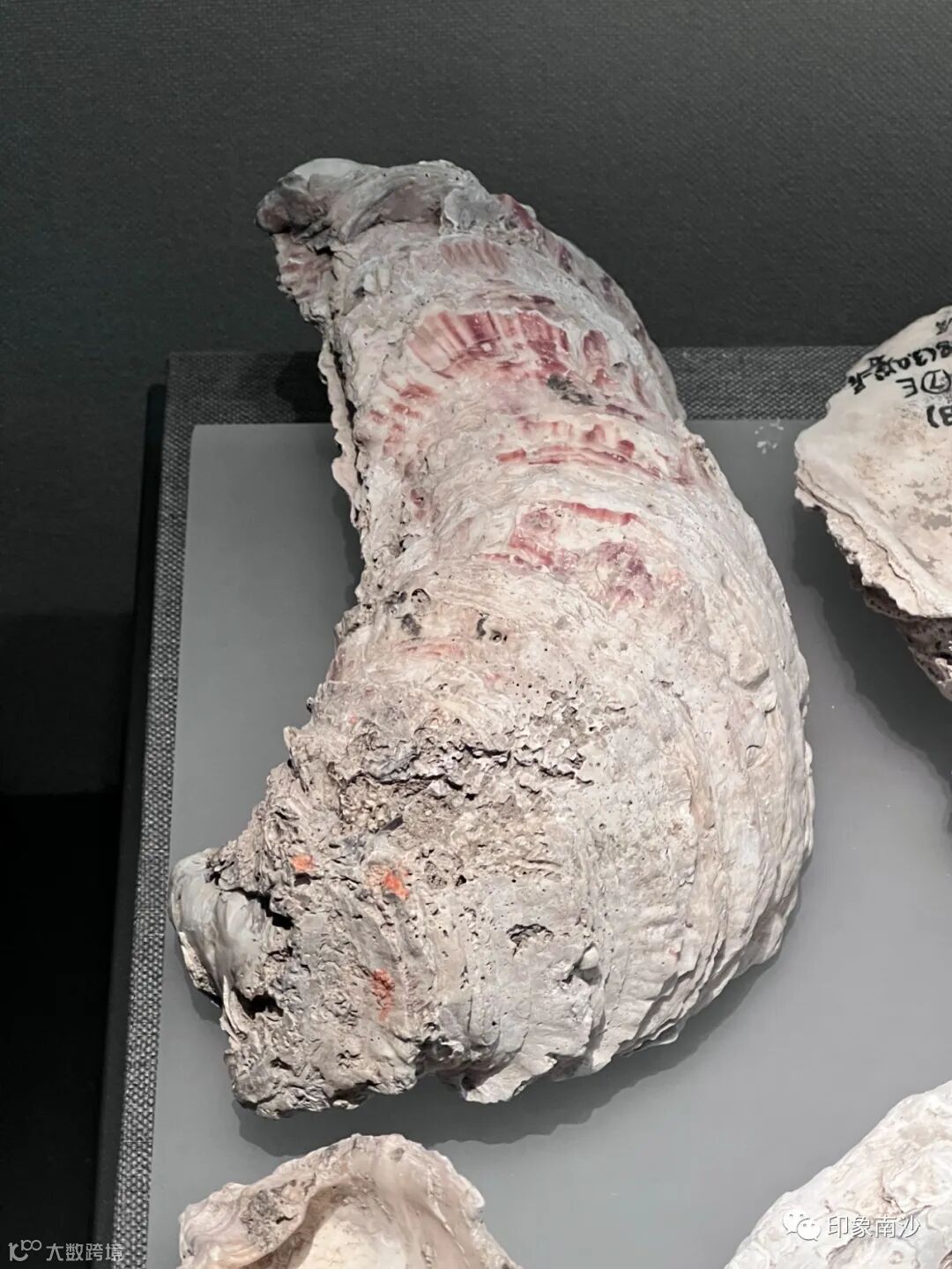在南沙鹿颈遗址挖掘出的商时期蚝壳,现存于广州南汉二陵博物馆,长约20CM、宽约10CM,证明南沙人采集和使用蚝壳的历史源远流长。这些巨大的蚝壳,曾是先民们的建筑材料,也是他们的生活见证。