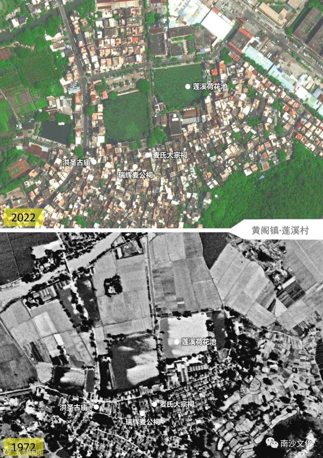 南宋咸淳九年(1273年),麦氏先祖迁此开村,初名“莲塘坊”,后因水网特征更名“莲溪”,彼时地处滨海,盛产蠔贝。民国时期海岸线南退,村民筑炮楼御海盗,原近海炮楼渐成村中心。2006年后广汽丰田征地建厂,海岸滩涂彻底转型为汽车产业重镇,现为南沙人口大村(总人口1.2万)及工业核心区。