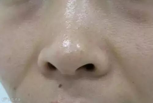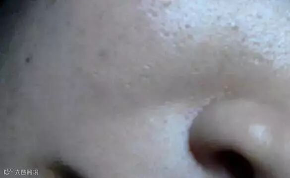 鼻翼两侧的毛孔用肉眼可以看到,毛孔泛油光,皮肤变厚、变粗糙的情况,属于毛孔粗大。