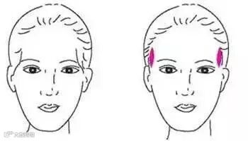 将头发全部绑起来,正视镜子,看到额头两侧和颧骨之间的线条有凹陷,呈现“3”字型,代表你的太阳穴有凹陷的情况。