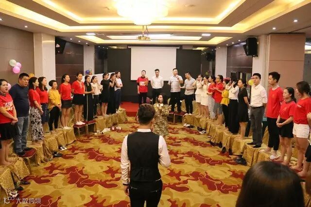 令员工站在高处围成圈,进行长达10多分钟的呐喊,大声说出内心声音,舒缓压力,释放情绪,提高团队凝聚力。