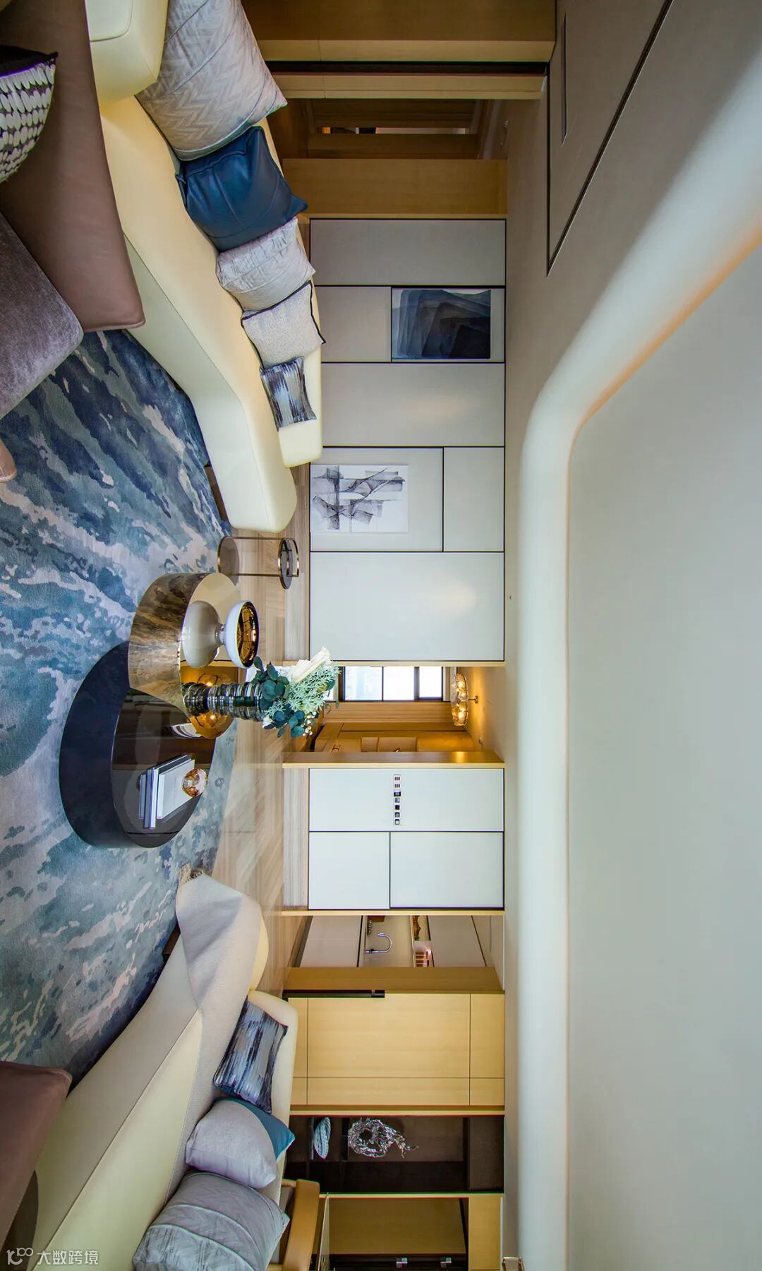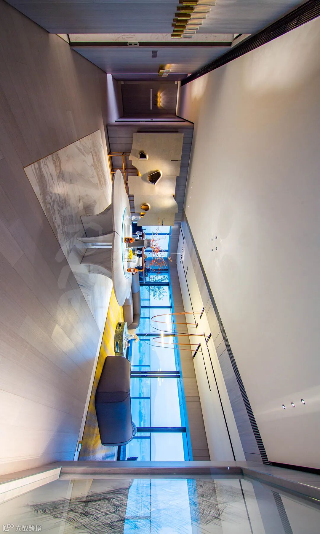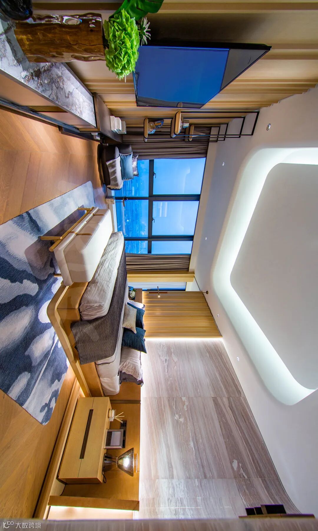 项目位于灵山岛尖头排,直面蕉门水道、珠江出海口,部分户型拥有21米超长L型阳台,实现270°无遮挡环幕海景。设计师采用“超级游艇”理念,最大化利用景观优势,客厅采光面长达21米,层高3.6米(远超普通住宅),营造“驾驶舱”般的观海体验。