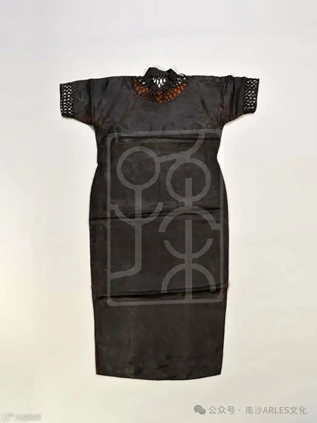 文物故事:该件文物为宋庆龄穿过的香云纱旗袍,肩颈处和袖口有网状镂空装饰,是宋庆龄晚年穿着的服装。旗袍两侧作了加宽处理。宋庆龄曾多次穿着该旗袍从事国务活动。香云纱又称“响云纱”,是采用纯植物染料薯莨染色的丝绸面料,制作工艺独特,数量稀少。面料凉爽宜人、手感轻薄柔软、遇水快干、不易起皱,被纺织界誉为“软黄金”。