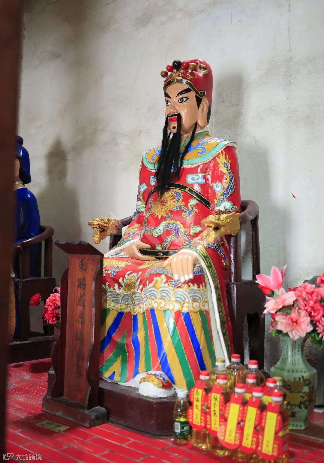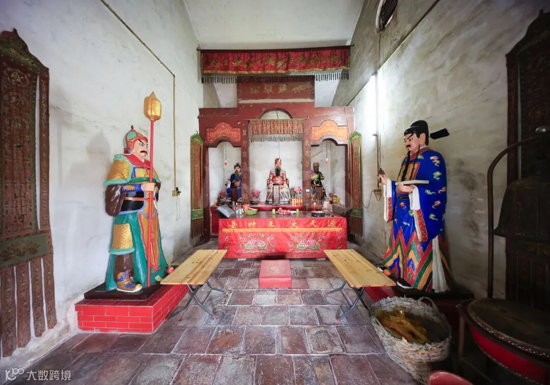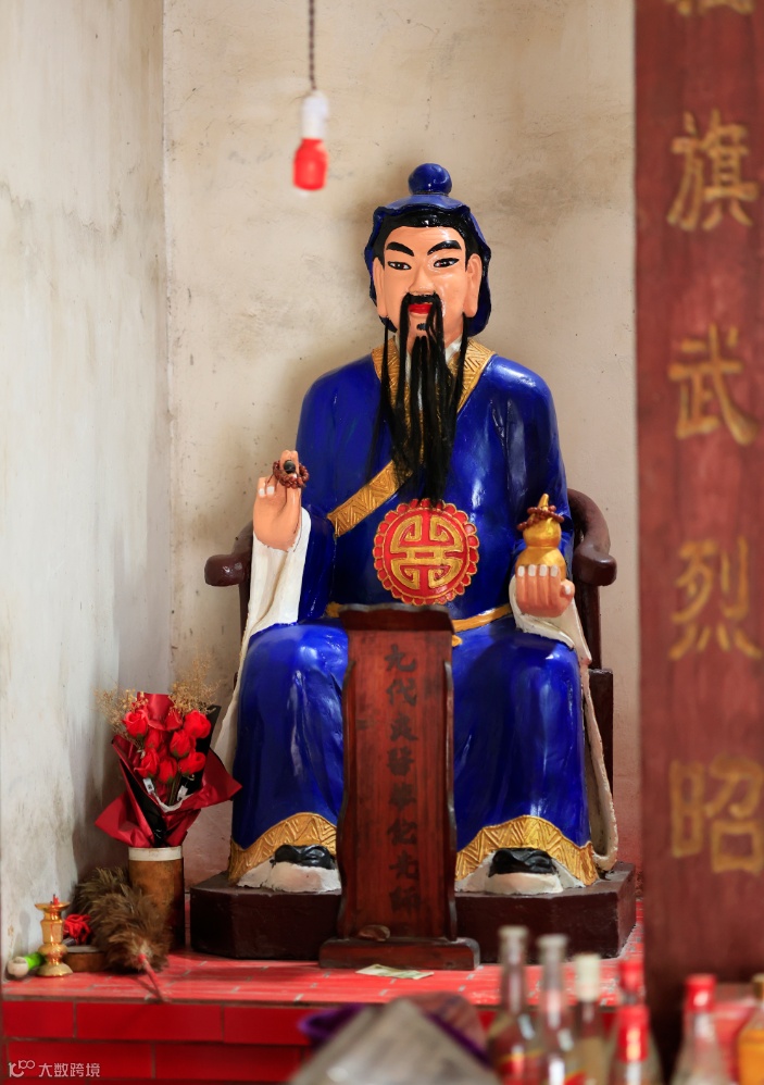 这大王庙供奉的菩萨有:感应通天大王(雷涧)、龙虎玄壇赵公元帅、九代良医华佗先师,这大王庙建好后,长年香火不息,全村自此风调雨顺,老少平安,正应了庙门前的哪副对联“蕉山法鼓通三界,雷涧云旗护两村”。一庙多神,也是珠三角地区民间信仰的一个特色。