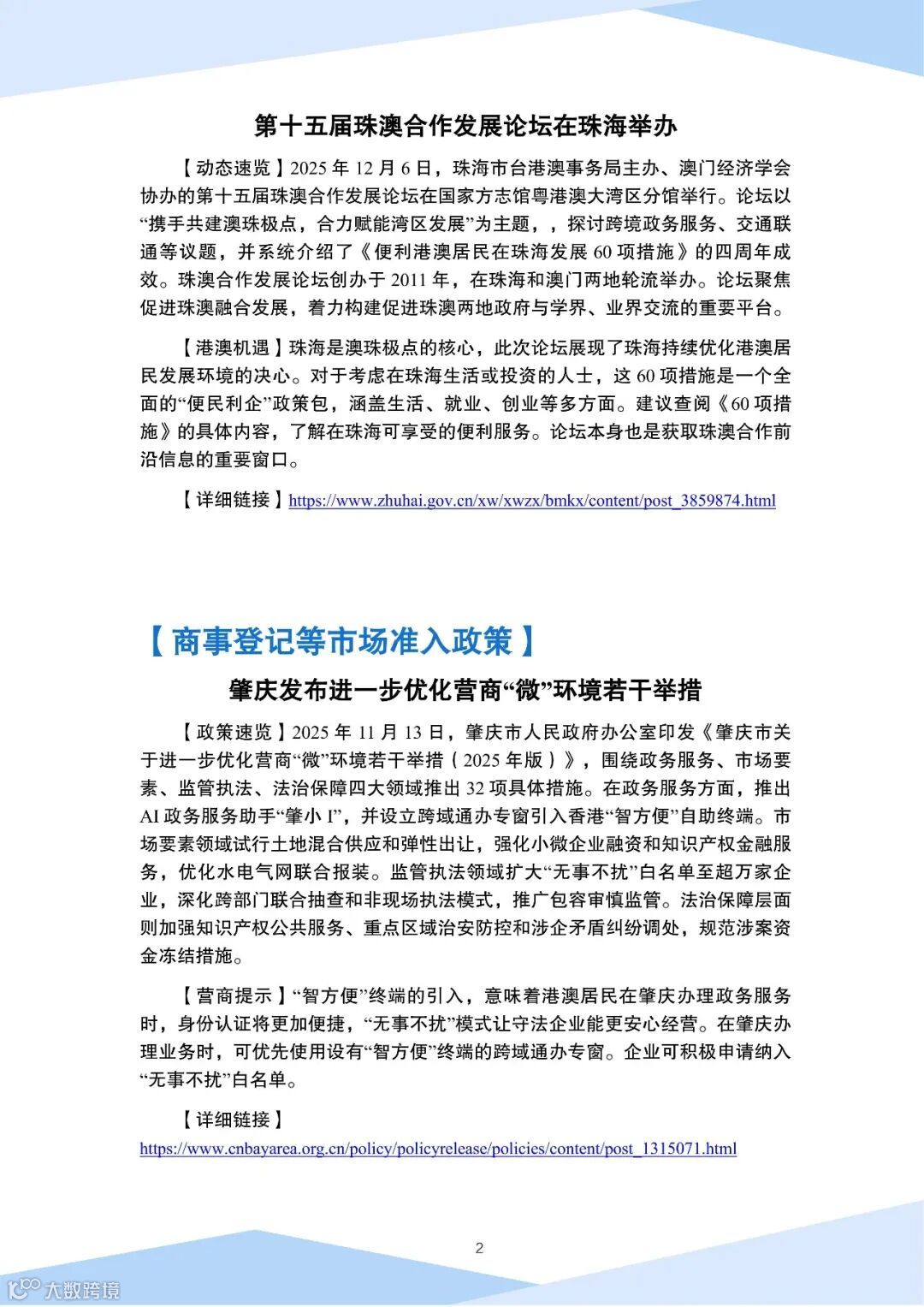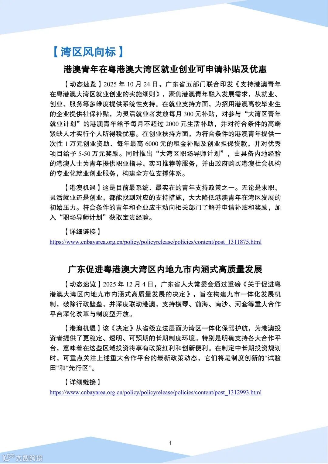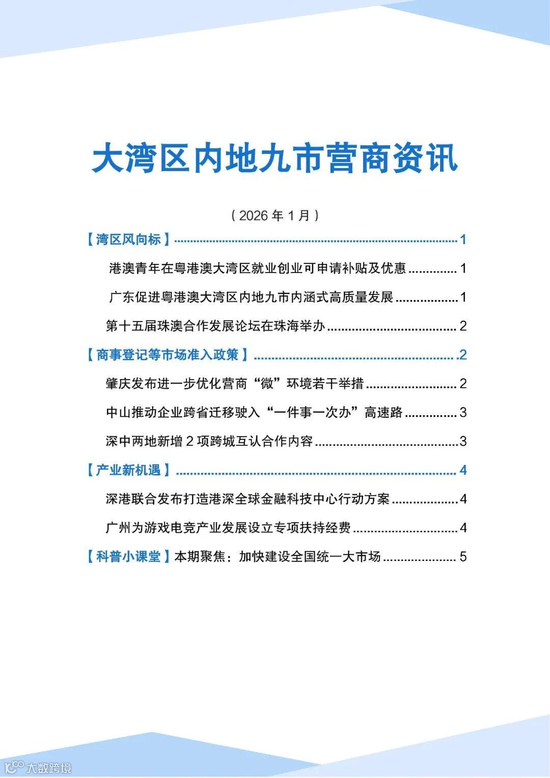 大湾区内地九市营商资讯(2026年1月)